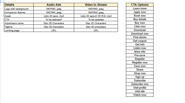 On Spotify, video ads are available in two main formats Video Banner is a full screen video in mobile and in desktop banner will be run along with the Video. Video Takeovers are full-screen ads displayed on the mobile app during ad breaks between songs. The pricing follows a Cost Per Impression (CPM) model, and it can be varied based on the targeting selected.